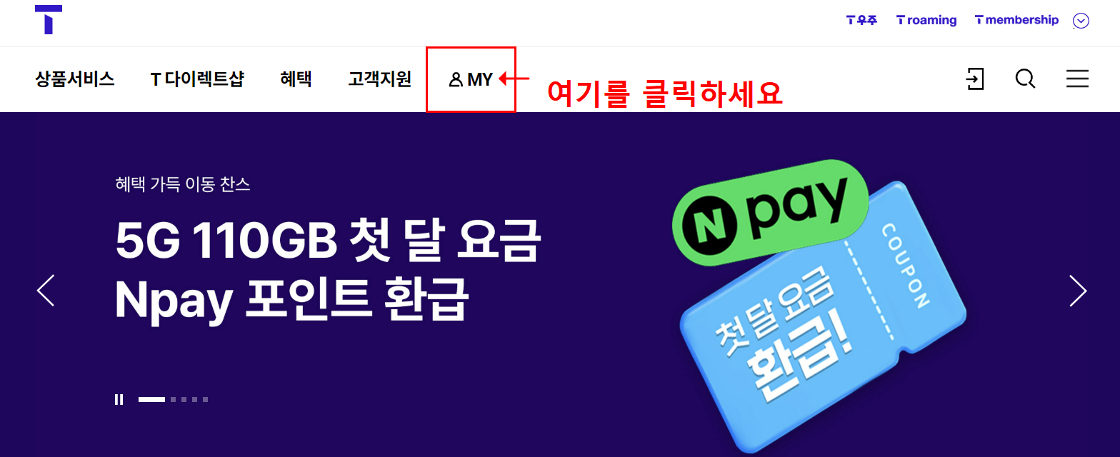 - T월드 홈페이지 접속 또는 앱 실행