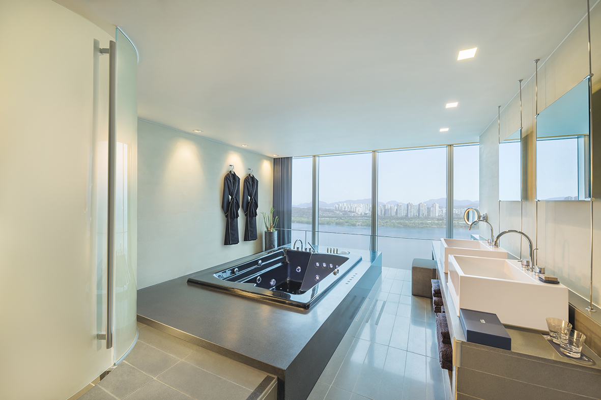 -서울 도심에 위치, 현대적인 인테리어, 호텔서비스, 한강뷰 전망이 좋습니다..