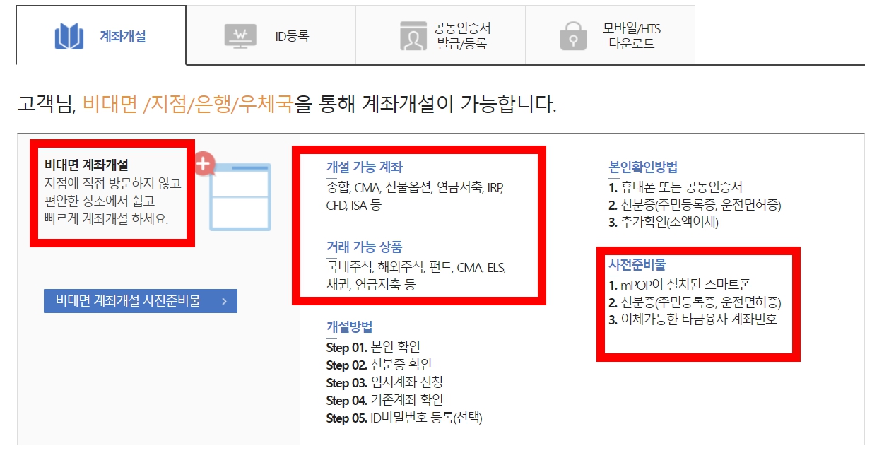 - 개설: mPOP 앱 1분 (온라인 불가)