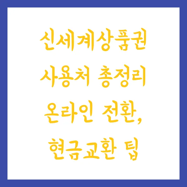 신세계상품권, 어디서 어떻게 써야 할지 고민이신가요? 오프라인 사용처부터 온라인 전환, 현금화 꿀팁까지, 신세계상품권 활용의 모든 것을 담았습니다! SSG MONEY 전환, 현금 교환 팁, 스마트한 상품권 관리법 까지 알아보고 똑똑하게 소비하세요! 신세계상품권, 이제 200% 활용할 시간입니다. 자, 그럼 지금부터 신세계 상품권 마스터가 되어볼까요? ^^