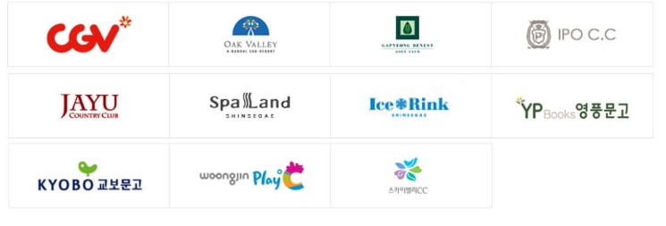 - 외식: 스타벅스, 빕스, 아웃백 스테이크하우스, 베니건스, 매드포갈릭, 피자헛, 올반 등 수많은 외식 브랜드에서 사용 가능! 분위기 좋은 레스토랑에서 근사한 식사를 즐겨보세요!
