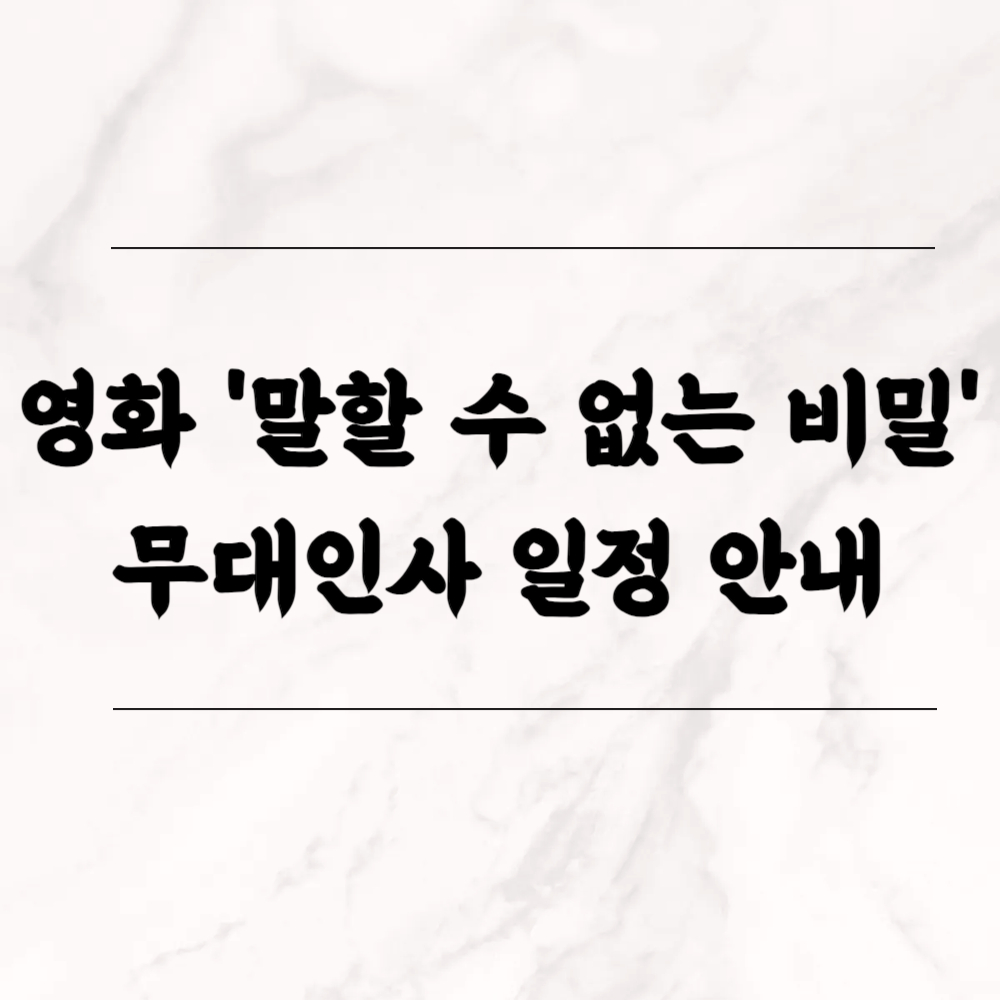 2025년 1월 28일 개봉하는 영화 '말할 수 없는 비밀'의 무대인사 일정이 발표되었습니다. 주연 배우인 도경수, 원진아 등과 감독을 직접 만날 수 있는 특별한 기회를 놓치지 마세요. 이번 글에서는 무대인사 일정, 예매 방법, 관람 팁에 대해 자세히 알려드립니다.