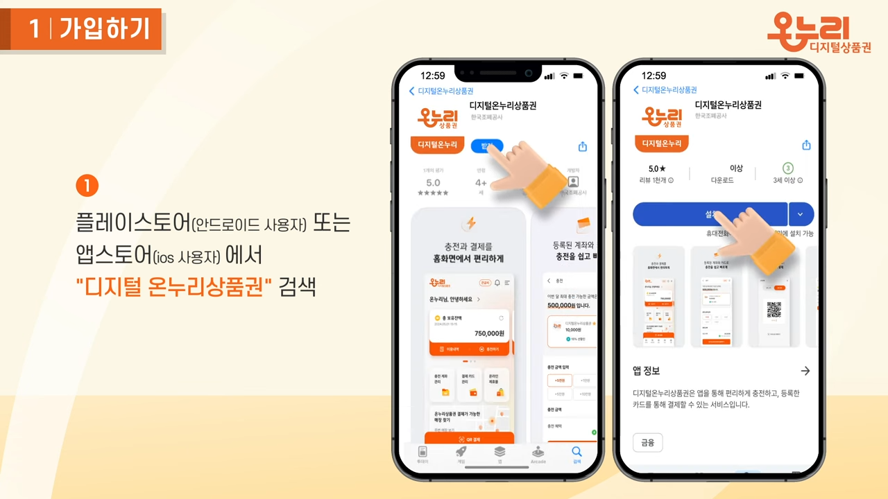 앱을 설치하신 후 회원가입 및 본인인증을 완료하면, 디지털 온누리상품권의 구매와 사용이 가능합니다. 자세한 사용 방법은 앱 내 가이드를 참고하시기 바랍니다.