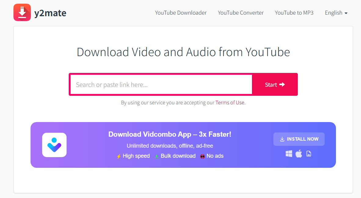 - 주소: www.y2mate.com