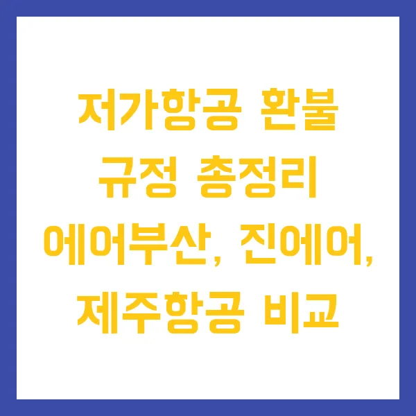 저가항공, 특가 항공권, 환불 규정, 에어부산, 진에어, 제주항공 등의 키워드로 2025년 최신 정보를 담아 저가항공사(LCC) 세 곳의 환불 정책을 비교 분석합니다. 예상치 못한 상황에 대비하여 환불 수수료, 노쇼(No-Show) 페널티, 운임 종류별 차이점 등 핵심 정보를 자세히 알아보고 스마트한 여행 계획을 세워보세요! 여행 경비 절약의 첫걸음, 바로 여기서 시작합니다!
