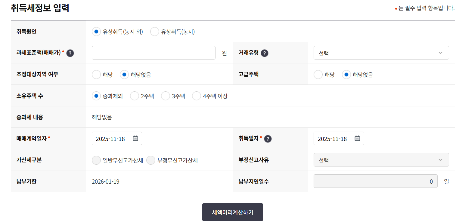- 매매계약 체결 후 60일 이내 취득세 신고